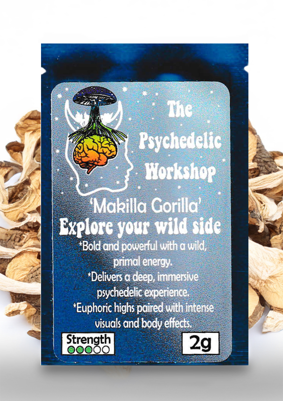 Makilla Gorilla Magic Mushrooms are a potent and visually striking strain known for their thick, robust stems and large, golden-brown caps. This powerful variety is prized for its strong psychoactive effects, offering a deeply introspective and euphoric experience.